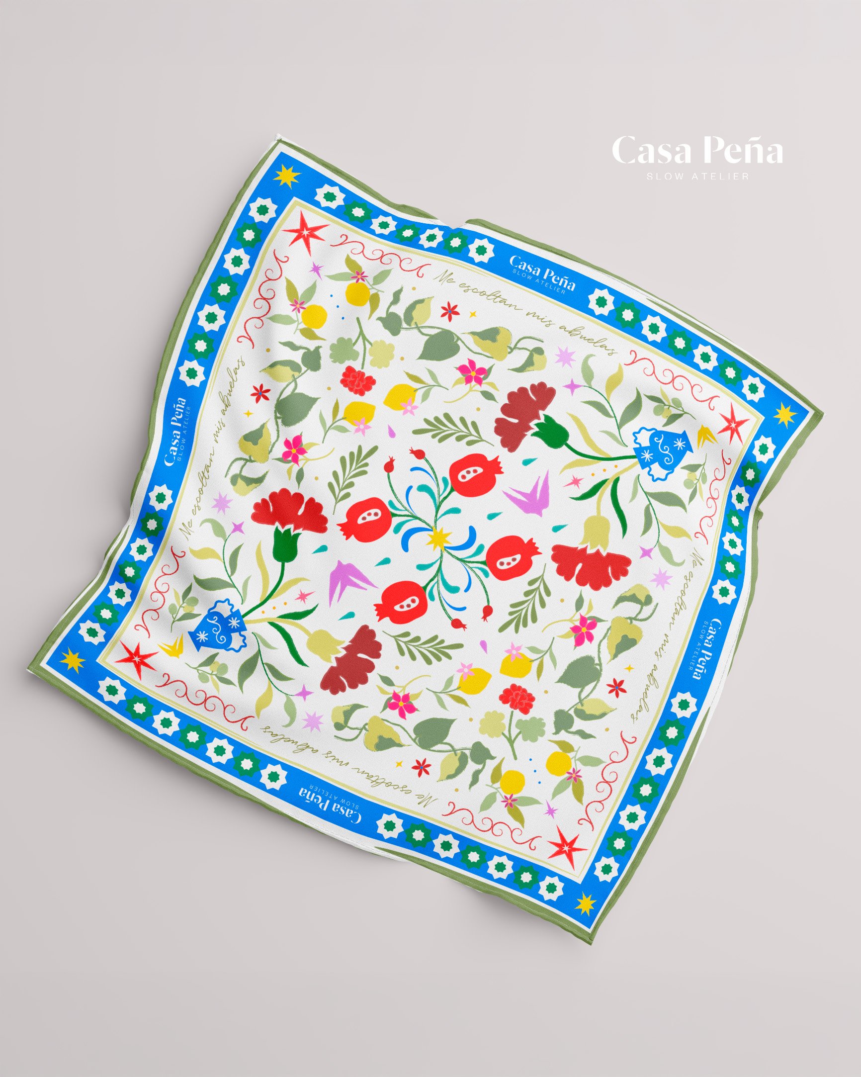 Cada pañuelo se confecciona de manera artesanal, con el tiempo y cuidado que merece. Al hacer tu encargo, reservas tu pieza única y nos das el margen necesario para producirla a mano especialmente para ti.